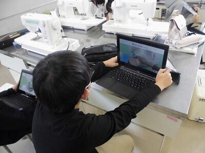 【5年生 家庭科】動画でミシンの使い方を確認してから。試し縫いを行いました。