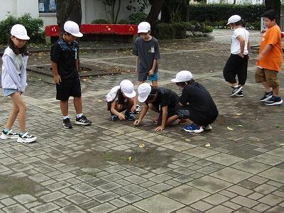 観察用のダンゴムシ集めをしました。プランターや鉢をの裏側にたくさんのダンゴムシを発見しました。