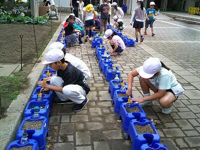 3年生では、理科でホウセンカの観察を行います。今日はその種植えを行いました。