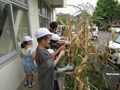 9月3日(月) さくら学級 トウモロコシ収穫 投稿日時 : 2024/09/03 豊春小学校管理者 カテゴリ: さくら学級ではこれまで育ててきたポップコーン用のトウモロコシの収穫を行いました。小粒の種類と粒が少し大きめの種類の2種類。この後の活動が楽しみです。