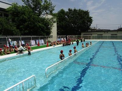 水に顔がつける練習、伏し浮きなど水慣れを行っています。
