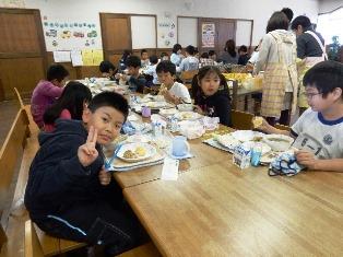 給食を残さないように頑張って食べたこと