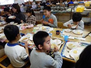 周りを囲んでいました。クリスマス給食を楽しみにしていたようです。