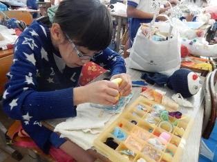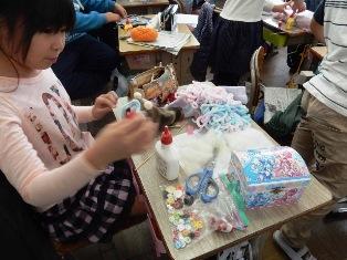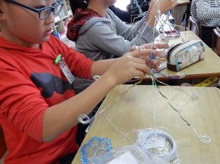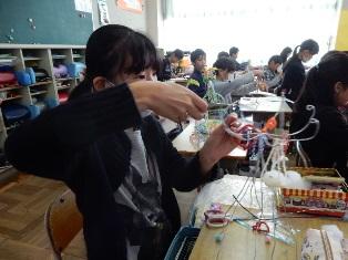 5年生は図工の授業で、針金をペンチなどで曲げながら作品を