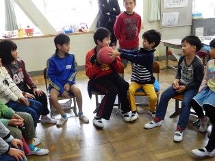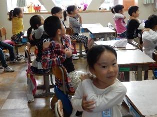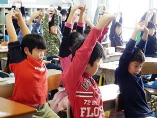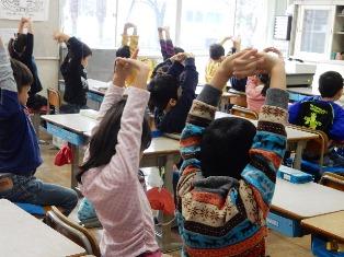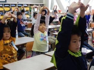 今日のさわやかタイムは雨で校庭が使えないため教室内で
