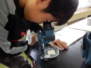 4年生は理科の実験をしています。氷の入ったビーカーに、