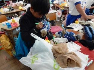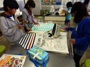 5年生は家庭科でエプロンを作っています。完成に近づいてきたようです。