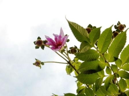 初めて花が咲いた皇帝ダリアです。以前紹介したように、昨年、校門前のお宅から頂戴し、