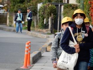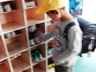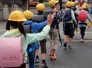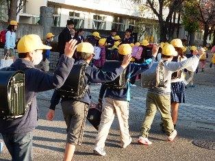 今日も中学生が掃除をしながら子どもたちを迎えています。