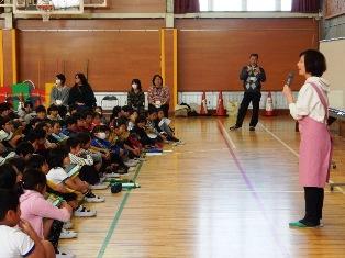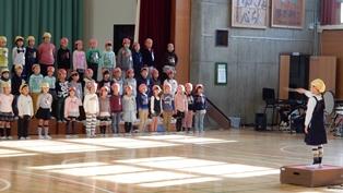 元気な明るい歌声が体育館いっぱいに響いていました。