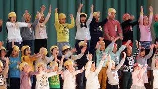 次に1年生の「手のひらを太陽に」です。1年生らしい素直で