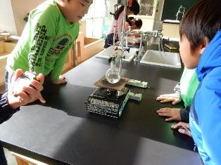 水の3つの姿を実験を通して学習しているのは4年生です。
