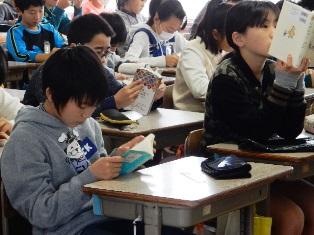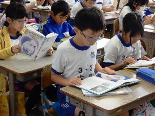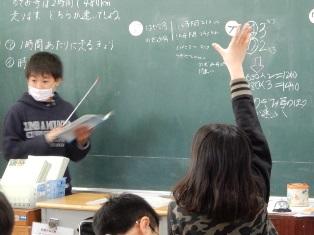4年生は道徳で、「雨のバス停留所で」を題材に話し合っています。