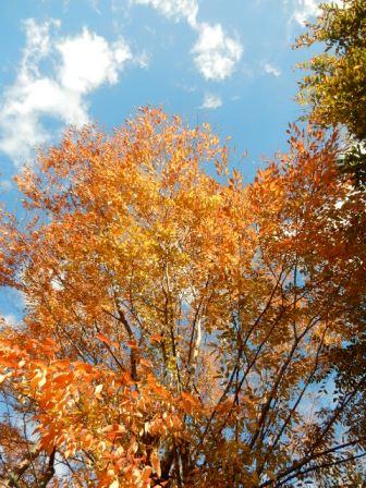空に伸びゆくケヤキの木が綺麗に色づいてきました。