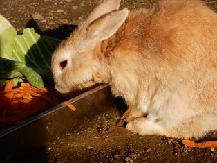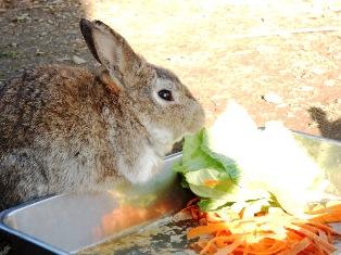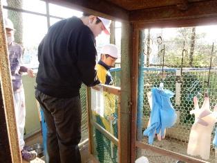 飼育委員会の皆さんがうさぎ小屋を掃除しています。