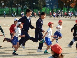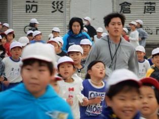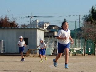 ゴールまで、後少し。先生が大きな声で声援を送っています。