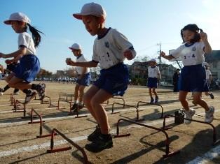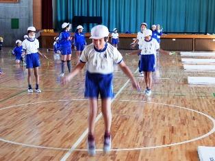 誰よりも素早く回す。4年生は決められた時間で何回回せるか