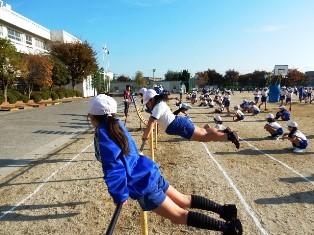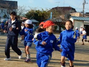 持久走大会ぬ向けて、練習に取り組む子どもたちです。
