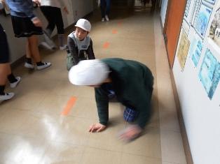 6年生は図工の作品を運んできました。一人で運ぶとバランスを