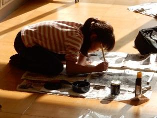 3年生は図工室で書き初めの練習です。初めての毛筆。