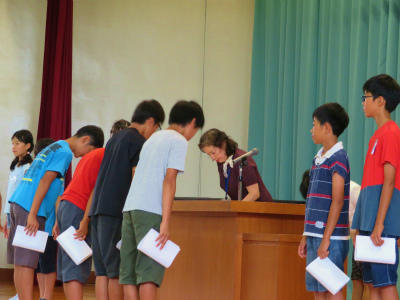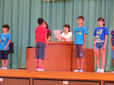 市内陸上大会、市民体育祭、硬筆展、自転車大会で入賞した子どもたちを表彰しました。
