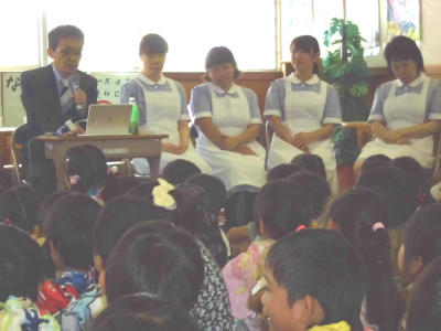 夏休み前、交通安全や生活全般にわたって安全に過ごせるよう、全校児童に向けて指導しました。