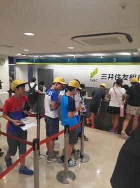 予定より早く6時55分に正門前を出発し、キッザニアに向かいました。