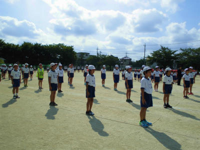 暑い朝でも元気に走る豊春の子どもたち。ぐっと成長する夏休みを送ってほしいと願っています。