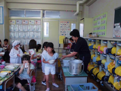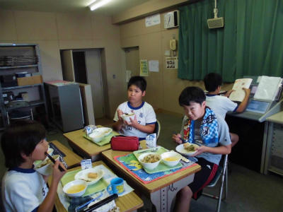 給食の時間が始まると、食べられる量の調節も始まります。苦手な食べ物も、