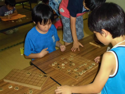 昔の遊びクラブ。未来の藤井四段を目指して、将棋の大戦中です。