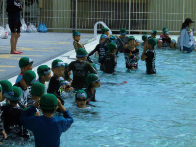 水泳学習に参加する子どもは、ここで参加することを教員に伝えます。