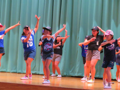 昼休みの暑い体育館が、ダンスクラブの子どもたちと応援の子どもたちの熱気にあふれました。はつらつとした元気な踊りに、みんな満足です。
