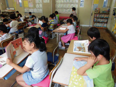 1-3 低学年図書室から本を借りてきました。真剣に読んでいます。