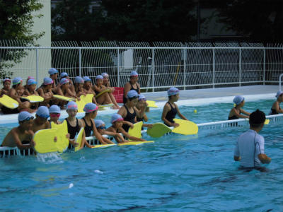 きょうから水泳・学習教室が始まりました。午後は、金管バンドクラブ練習もあります。