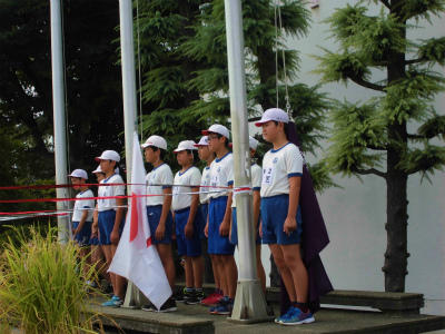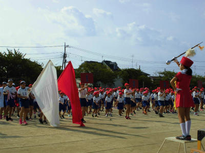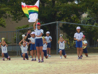 行進の演奏、旗の掲揚、応援等々、高学年児童は運動会で色々な役割を担っています。