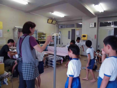 保健室では発育測定を行いました。静かに行動できる子どもたちの成長にビックリしたり嬉しくなったりしています。