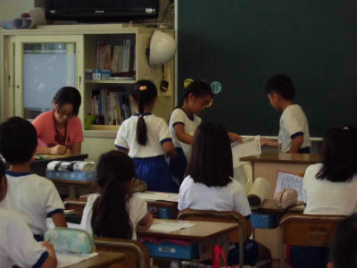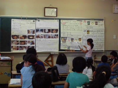 夏休みに取り組んだ自由研究の発表会を行っています。テーマの選び方、研究の進め方、まとめ方を友だちから学ぶと、来年度にも活かせそうです。