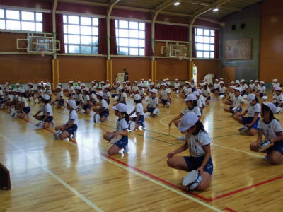 8時30分から、全校児童による運動会練習を行いました。入退場と開会式の流れをひと通り行いました。子どもたちが集中して練習に参加していたので、明日の予定だった応援練習も少し行うことができました。