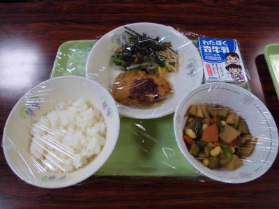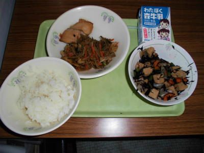 ごはん、牛乳、トンカツ、磯香和え、五目煮