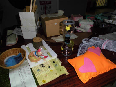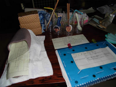 子どもたちの生活の中で、あったらいいなと思う物を考え、制作した物です。雑巾が簡単に縫える工夫、家族の持ち物を整理する工夫など、バラエティーに富んでいます。