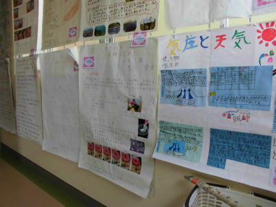 3年生は、理科の自由研究発表会を行っていました。力作揃いで感心します。