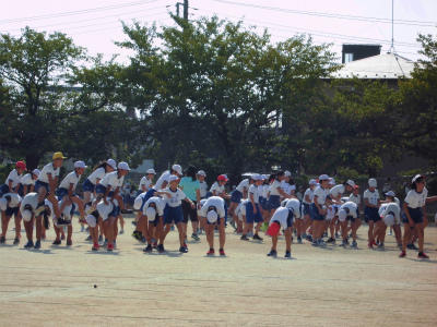 全校児童で運動会の練習
