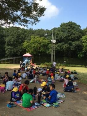 少し早めのお昼です。3年生保護者の皆様、お弁当作り、ありがとうございます。内牧アスレチック広場近くでいただいています。