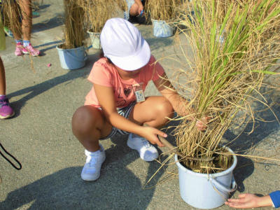 5年のバケツ稲も実りを迎えました。学校応援団である渡辺様の指導の下、