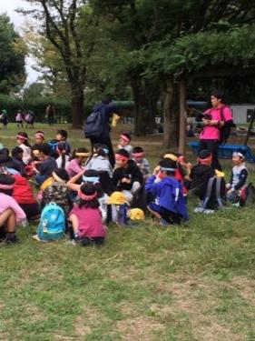 バンダナを巻いてグループ行動の開始です。まとまって安全に行動します。