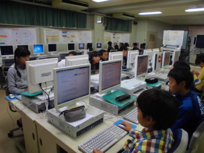 1年生、算数の授業です。視聴覚機器を使って分かりやすく学習しています。
