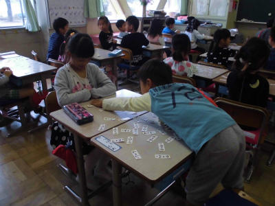友だちタイムでは、異学年の友だちとも仲良く遊びました。外では遊べないので、室内ゲームを楽しみました。