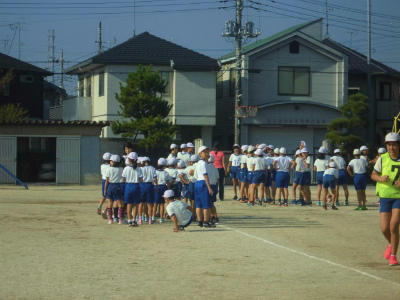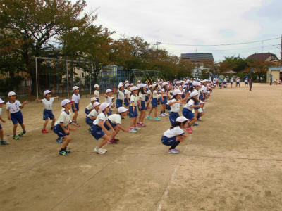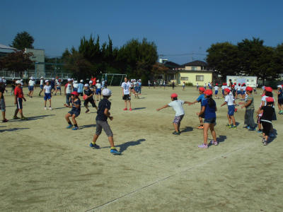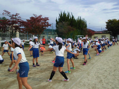 準備運動の一つとして、体を使ったじゃんけんを全校で取り組みました。