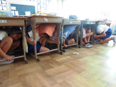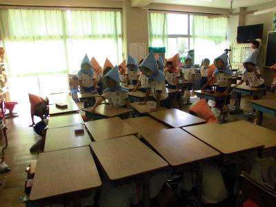 竜巻を想定した避難訓練を実施しました。どの子も真剣に話をすることなく行えていました。