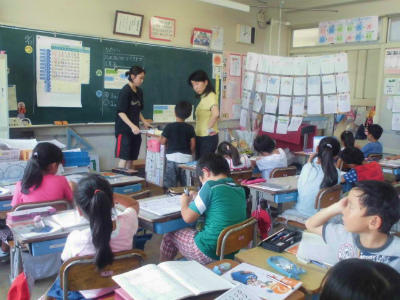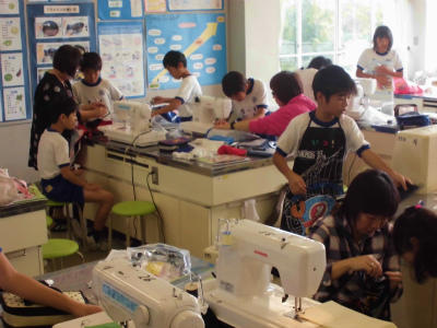 5年生、家庭科の授業です。ボランティアの保護者の方も来ていただいています。